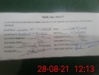 | Monitoring Date: 28-08-2021 | Start Time: 28-08-2021 11:08 AM | End Time: 28-08-2021 12:23 PM | Name of MEA: Ah**** Za**** | |
