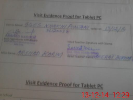 | Attendance Register | Head Teacher | MEA with School | Visit Proof |