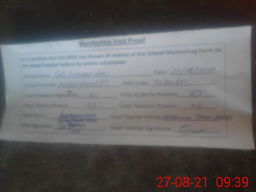 | Certified that this School was Inspected by the Undersigned MEA/DMO Today and the Information Stated Above is as Per Record. | |||||