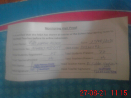 | Attendance Register | Head Teacher | MEA with School | Visit Proof |