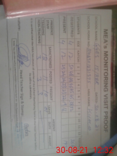 | Monitoring Date: 30-08-2021 | Start Time: 30-08-2021 11:22 AM | End Time: 30-08-2021 12:33 PM | Name of MEA: Kh**** Me**** | |
