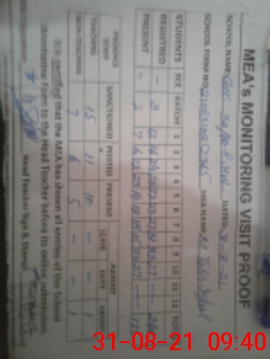 | Certified that this School was Inspected by the Undersigned MEA/DMO Today and the Information Stated Above is as Per Record. | |||||