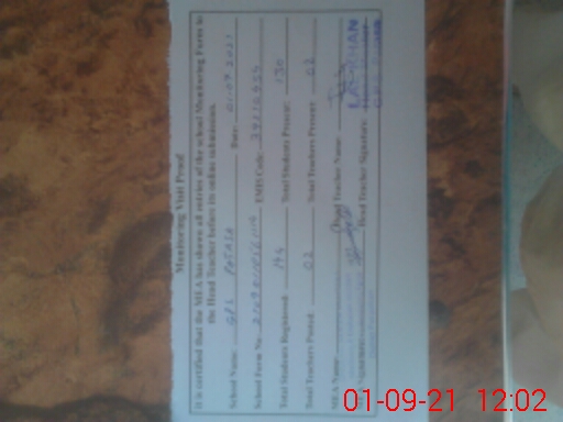 | Attendance Register | Head Teacher | MEA with School | Visit Proof |