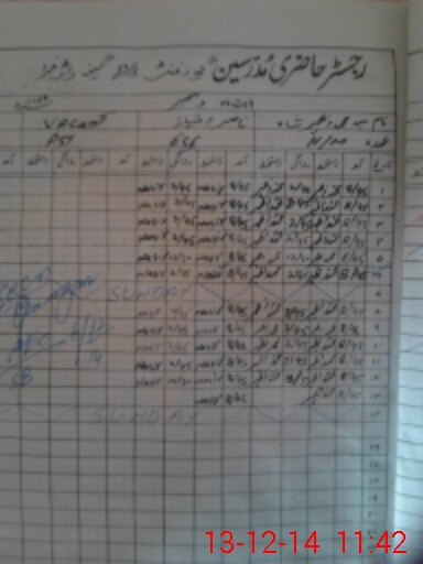 | CNIC | Full Name | Designation | R/C | Absence During Last Calender Month |