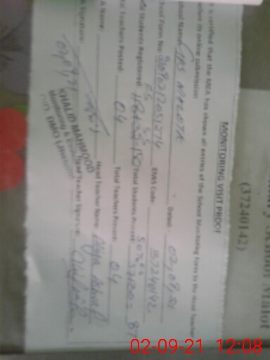 | Certified that this School was Inspected by the Undersigned MEA/DMO Today and the Information Stated Above is as Per Record. | |||||