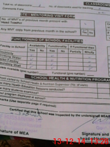 | Certified that this School was Inspected by the Undersigned MEA/DMO Today and the Information Stated Above is as Per Record. | |||||