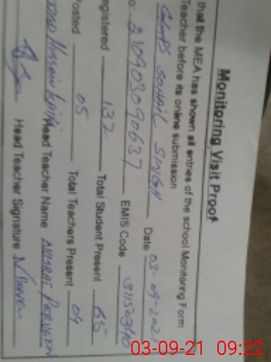 | EMIS Code: 31150340 | Name of School: GGPS SOHAIL SINGH | |||