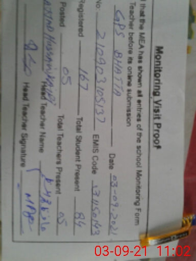 | EMIS Code: 31150143 | Name of School: GPS BHATTA | |||