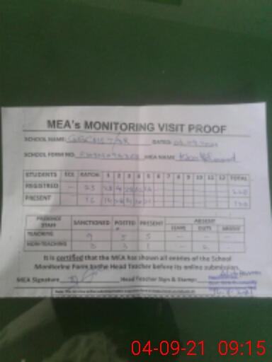 | Attendance Register | Head Teacher | MEA with School | Visit Proof |