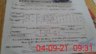 | Monitoring Date: 04-09-2021 | Start Time: 04-09-2021 09:06 AM | End Time: 04-09-2021 09:34 AM | Name of MEA: Sa**** Ah**** | |