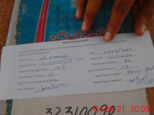 | Name: SH**** Iq**** Designation: (School Headmaster's/Headmistress's) PST Phone/Cell Number: 03**** |