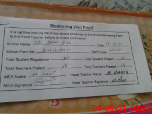 | Attendance Register | Head Teacher | MEA with School | Visit Proof |