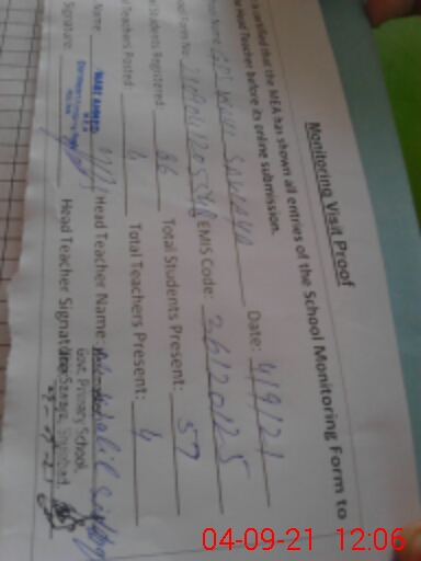 | Attendance Register | Head Teacher | MEA with School | Visit Proof |