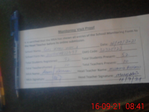 | Certified that this School was Inspected by the Undersigned MEA/DMO Today and the Information Stated Above is as Per Record. | |||||