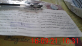 | School Visited by School Health & Nutrition Supervisor (No. of Visits) | 1 | Name1: | Sufia Bibi | Name2: | Nil |