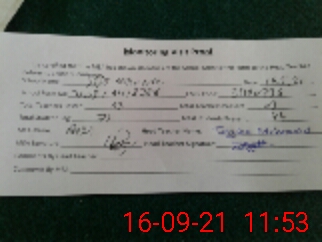 | Monitoring Date: 16-09-2021 | Start Time: 16-09-2021 11:16 AM | End Time: 16-09-2021 12:21 PM | Name of MEA: Ra**** Hu**** Gi**** | |