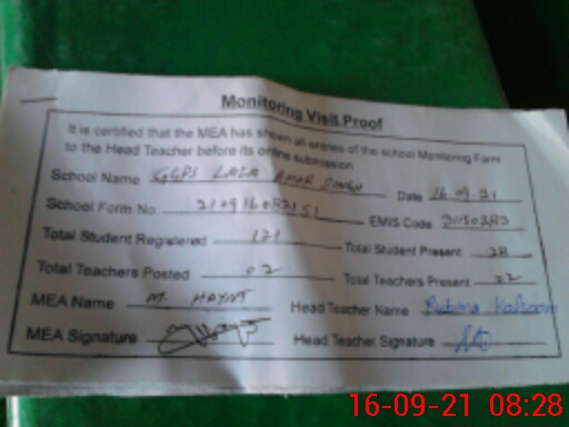 | Certified that this School was Inspected by the Undersigned MEA/DMO Today and the Information Stated Above is as Per Record. | |||||