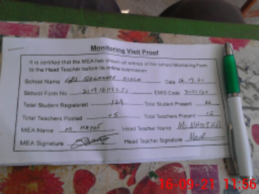 | Certified that this School was Inspected by the Undersigned MEA/DMO Today and the Information Stated Above is as Per Record. | |||||