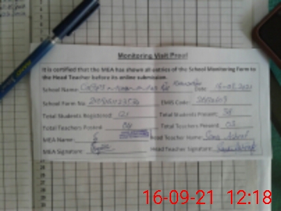 | Certified that this School was Inspected by the Undersigned MEA/DMO Today and the Information Stated Above is as Per Record. | |||||