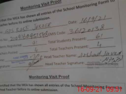 | Name: Ar**** Ja**** Designation: (School Headmaster's/Headmistress's) HEADMASTER Phone/Cell Number: 03**** |