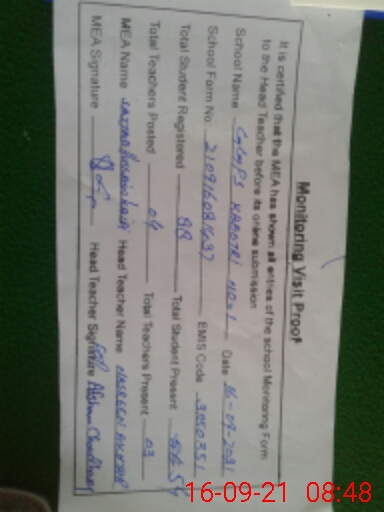 | Attendance Register | Head Teacher | MEA with School | Visit Proof |