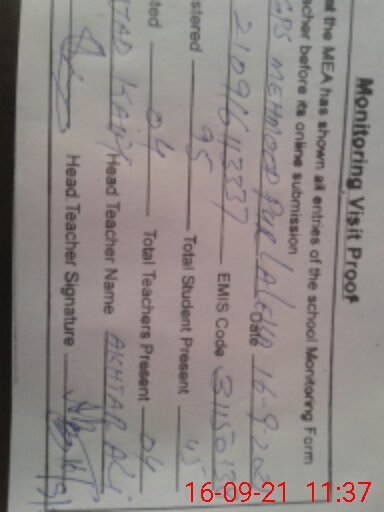 | EMIS Code: 31150138 | Name of School: GPS MEHMOOD PUR LALAY KA | |||