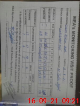 | Monitoring Date: 16-09-2021 | Start Time: 16-09-2021 08:01 AM | End Time: 16-09-2021 09:28 AM | Name of MEA: M.Ta**** Iq**** (S**** | |