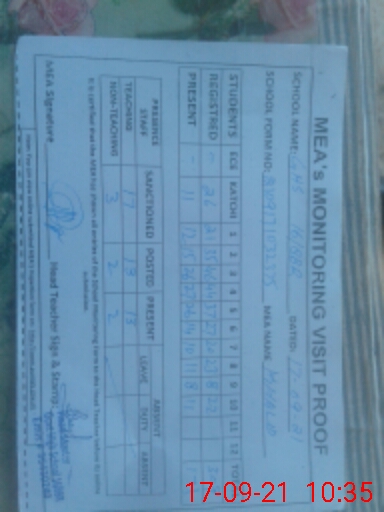 | Monitoring Date: 17-09-2021 | Start Time: 17-09-2021 08:21 AM | End Time: 17-09-2021 10:42 AM | Name of MEA: Kh**** Me**** | |