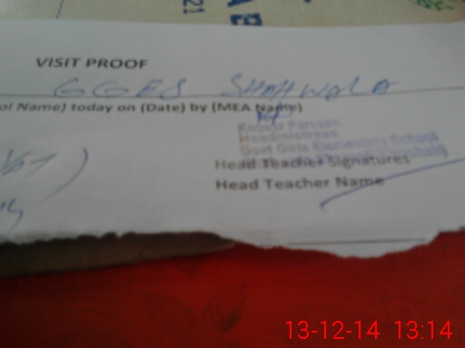 | Attendance Register | Head Teacher | MEA with School | Visit Proof |