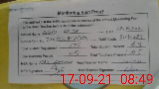 | Monitoring Date: 17-09-2021 | Start Time: 17-09-2021 08:17 AM | End Time: 17-09-2021 08:51 AM | Name of MEA: EJ**** HU**** BN**** | |