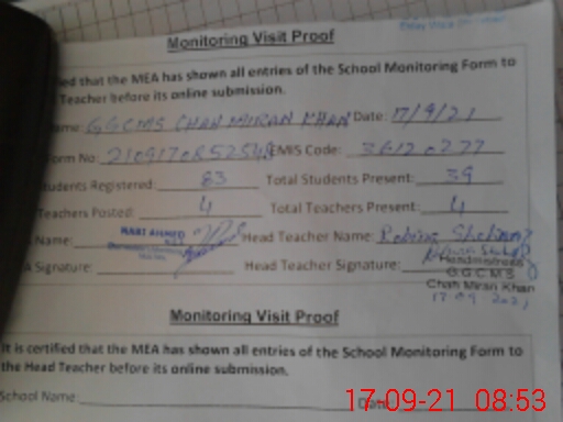 | EMIS Code: 36120277 | Name of School: GGCMS CHAH MIRAN KHAN | |||