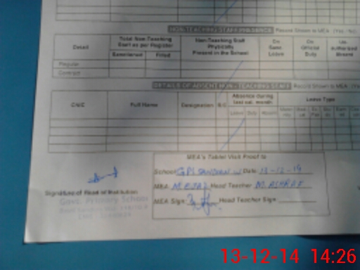 | Attendance Register | Head Teacher | MEA with School | Visit Proof |
