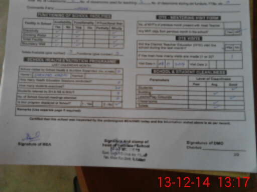 | Attendance Register | Head Teacher | MEA with School | Visit Proof |