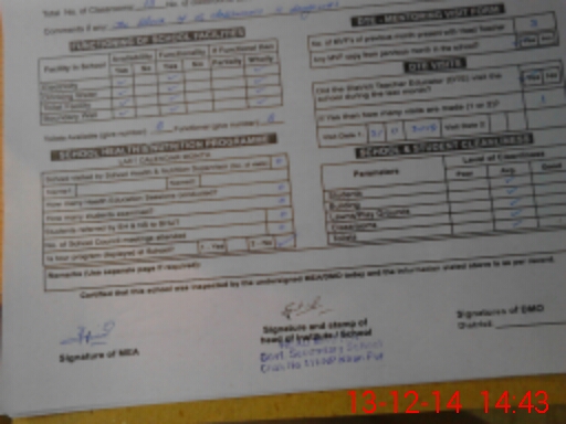 | Certified that this School was Inspected by the Undersigned MEA/DMO Today and the Information Stated Above is as Per Record. | |||||