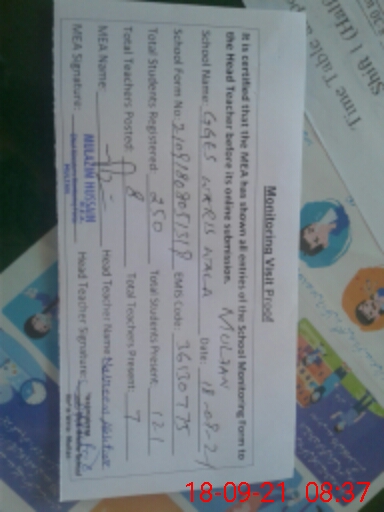 | Attendance Register | Head Teacher | MEA with School | Visit Proof |