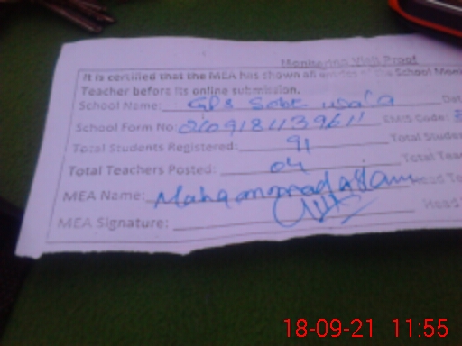 | Certified that this School was Inspected by the Undersigned MEA/DMO Today and the Information Stated Above is as Per Record. | |||||