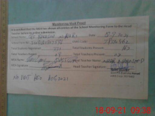 | Attendance Register | Head Teacher | MEA with School | Visit Proof |