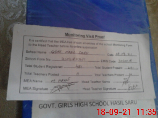 | EMIS Code: 31150018 | Name of School: GGHS HASIL SARU | |||