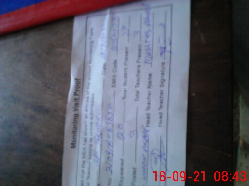 | Attendance Register | Head Teacher | MEA with School | Visit Proof |