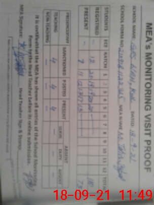 | Attendance Register | Head Teacher | MEA with School | Visit Proof |