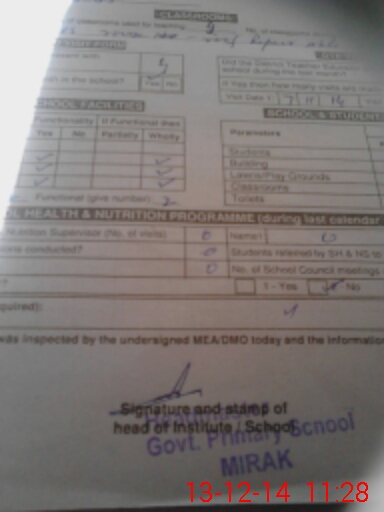 | Certified that this School was Inspected by the Undersigned MEA/DMO Today and the Information Stated Above is as Per Record. | |||||
