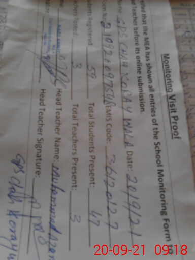 | EMIS Code: 36120127 | Name of School: GPS CHAH KORAY WALA | |||