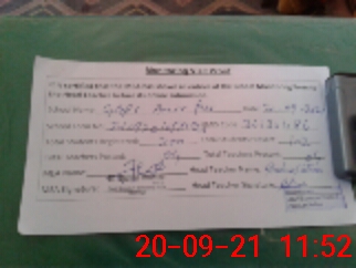 | Attendance Register | Head Teacher | MEA with School | Visit Proof |