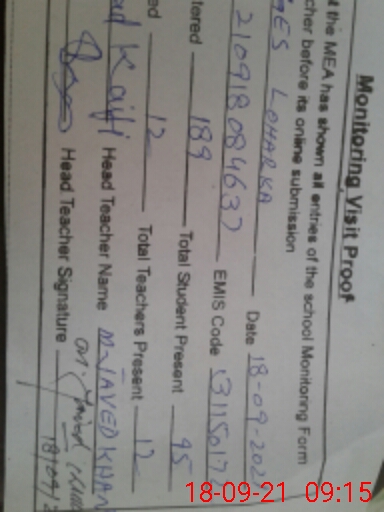 | Certified that this School was Inspected by the Undersigned MEA/DMO Today and the Information Stated Above is as Per Record. | |||||