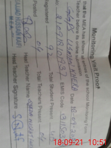| Certified that this School was Inspected by the Undersigned MEA/DMO Today and the Information Stated Above is as Per Record. | |||||