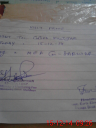 | Attendance Register | Head Teacher | MEA with School | Visit Proof |