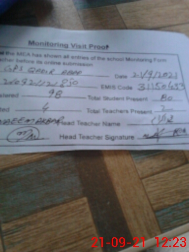 | EMIS Code: 31150433 | Name of School: GPS QADIR ABAD | |||