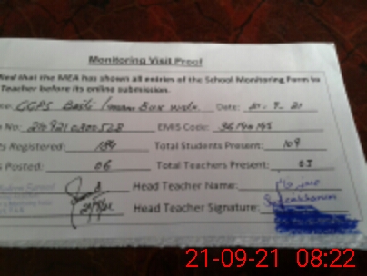 | Certified that this School was Inspected by the Undersigned MEA/DMO Today and the Information Stated Above is as Per Record. | |||||