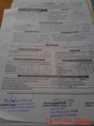 | School Visited by School Health & Nutrition Supervisor (No. of Visits) | 1 | Name1: | Atif Farid Chishti | Name2: | |