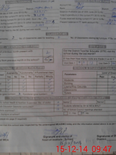 | Attendance Register | Head Teacher | MEA with School | Visit Proof |
